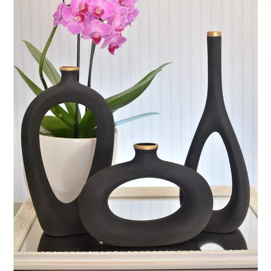 Conjunto de 3 Vasos Cerâmicos Geométricos - Decoração Sofisticada e Moderna