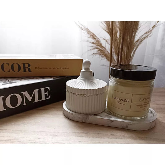 Bandeja Decorativa Oval em Concreto: Elegância Minimalista para a sua Decoração