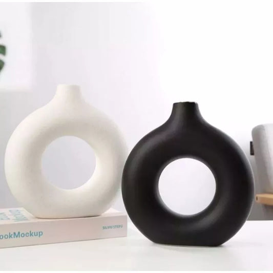 Kit 2 Vasos Decorativos Donut com Plantas Artificiais - Estilo Nórdico para Decoração de Sala